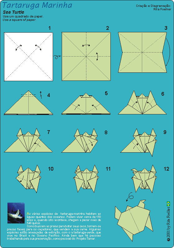 Existem muitos outros modelos de tartaruga e sapo, caso queiram se aventurar um pouco mais façam buscas na internet. Vão encontrar origamis incríveis.