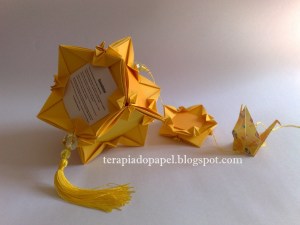 Esse kusudama é muito legal, ele pode ser usado como porta retrato ou se quiser dar um cartão bem original, é só escrever mensagens em suas 6 faces.