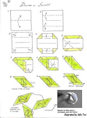 Para quem quiser fazer o chaveiro, aqui vai o diagrama dele. É um kusudama de 6 módulos, de fácil execução. Particularmante, gosto desse modelo, representa bem o estilo oriental. Recebe vários nomes; Brocade, Fantasy, Ishibashi Ball…