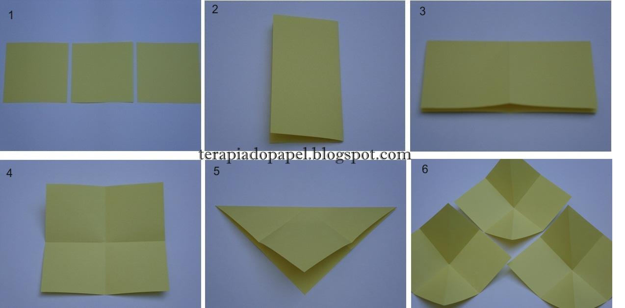 Nesse modelo, você vai usar 3 folhas quadradas tamanho 15x15cm. Pode ser papel de presente, scrapbooking, color plus, aqui usei 3 folhas de chamequinho amarelo mesmo.
