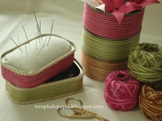 Você conhece o blogue do Norberto Akio Kawakami? Apesar de achar linda a arte do origami, não sei fazer nenhuma dobradura 😦 Mas enrolar os barbantes já fiz e é bastante versátil. O modo como aproveitou as latinhas de sardinhas foi super criativo e ficou lindo! Eu quero!! 😀 Beijus,