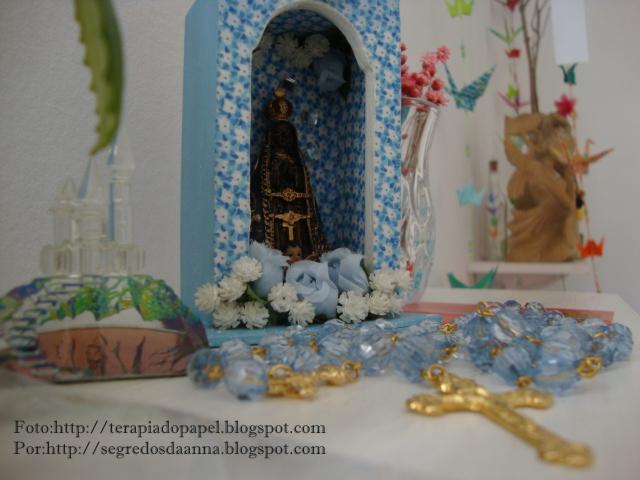 Um lindo Oratório com a Nossa Senhora Aparecida e sua oração.