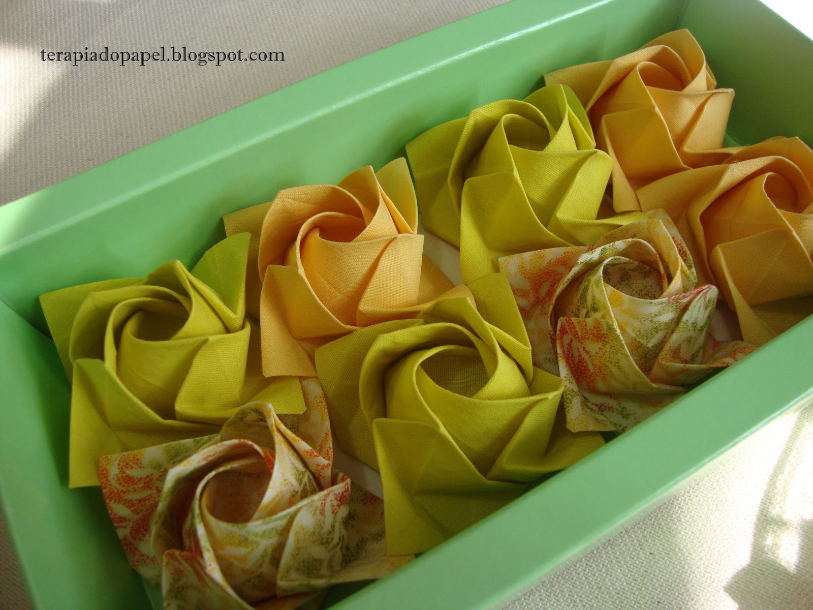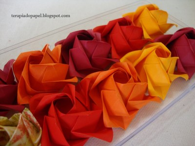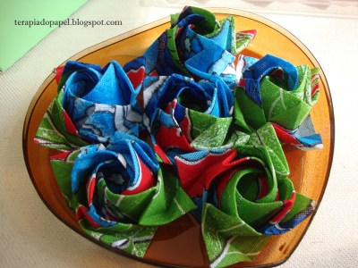 Rosas Kawasaki dobradas em tecido e chitão.