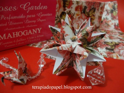 Hoje são os papéis perfumados para gavetas que, de acordo com a propaganda , sua fragrância pode durar até 2 anos, dessa marca. Achei um pouco de exagero mas gostei da proposta, da estampa e não gostei do preço mas a vontade de experimentar aplicado ao Origami  para os presentes de Natal foi maior.