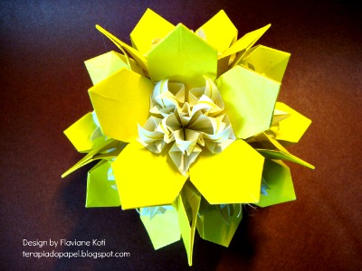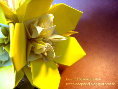 Ps: O nome Flora foi escolhido depois de uma rápida pesquisa. Por ser um nome comum, caso  já haja alguma kusudama com esse nome, peço desculpas e me prontifico a mudar. sem problemas.