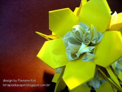 Nesse caso, os lírios estão presentes sim. O miolo das flores são compostos de pequenos lírios que juntos, um pouco diferente do que imaginei confesso, se transformaram em flores ou na kusudama Flora.