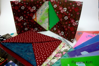 Todo dobrador(gosto do termo), ou se preferir,origamista, têm um carinho todo especial por seus papéis, os guarda com todo cuidado, por isso e atendendo a um pedido de um amigo(Marcelo Kono), já faz um tempinho, usei um modelo de porta-cartão alterando as medidas de forma a se tornar uma PASTA PARA GUARDAR PAPÉIS, de tamanho 15 x 15cm, feita em TECIDO.
