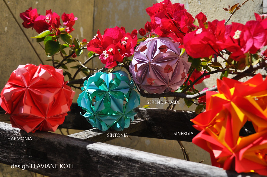 Mas hoje vou um pouco além nessa explicação. Vou falar por que me apaixonei, o que sinto e como vejo essa arte milenar chamada Origami que engloba essas kusudamas, Origamis modulares, simples, complexos …