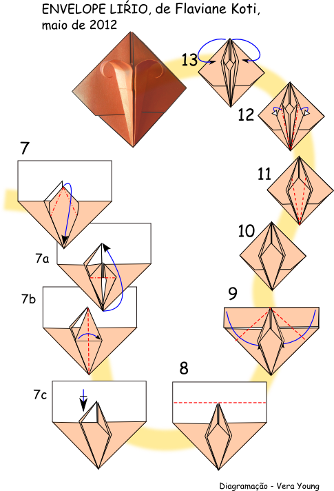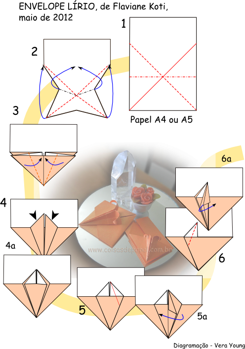 | Releitura do ENVELOPE LÍRIO, diagrama no livro ORIGAMI EM FLOR e de aqui também! |