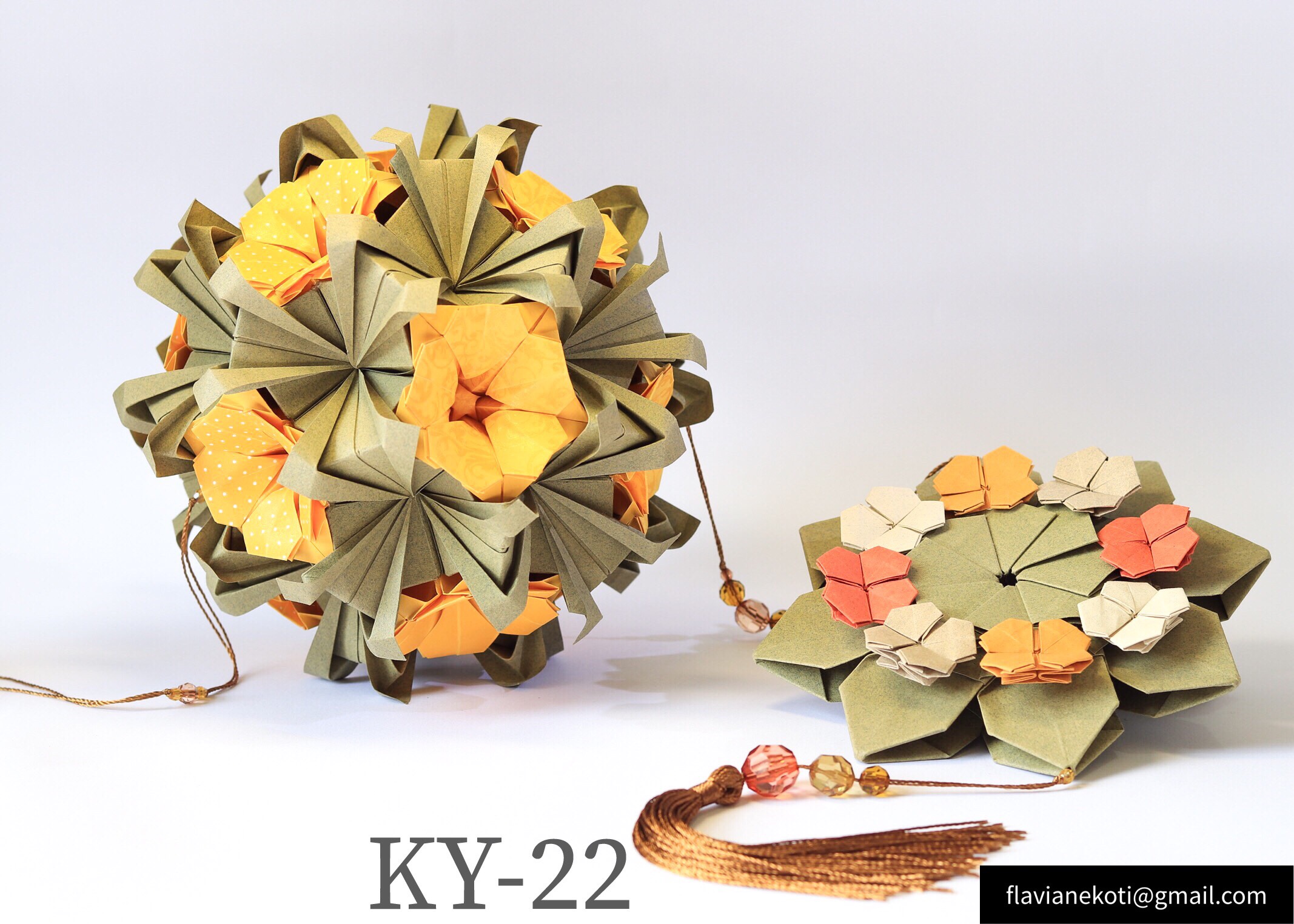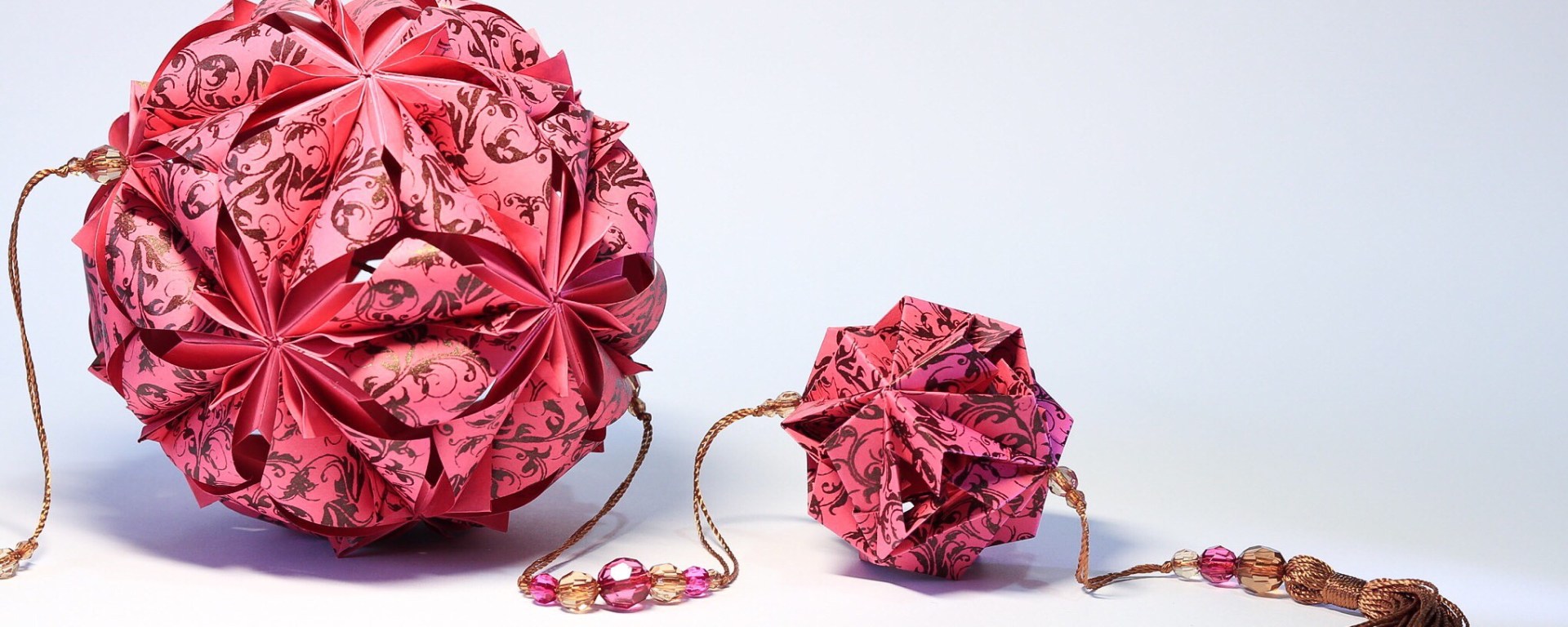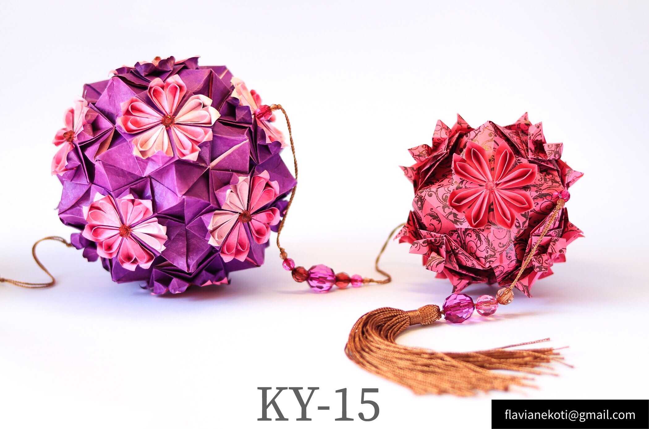 Kusudamas (bolas curativas), em móbiles com fios, contas, pompons, pingentes, embalados em caixa de origami, com texto explicando a simbologia da kusudama, levemente perfumado, repleto de boas energias.